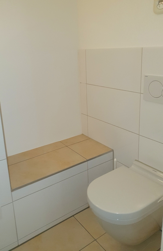 + Tageslichtbad mit weißen Sanitärausstattungsgegenstände von 'Duravit', und Armaturen 'Hans Grohe', Dusche, Badewanne, Waschbecken, Handtuchheizkörper und WC sowie Waschmaschinenanschluß.