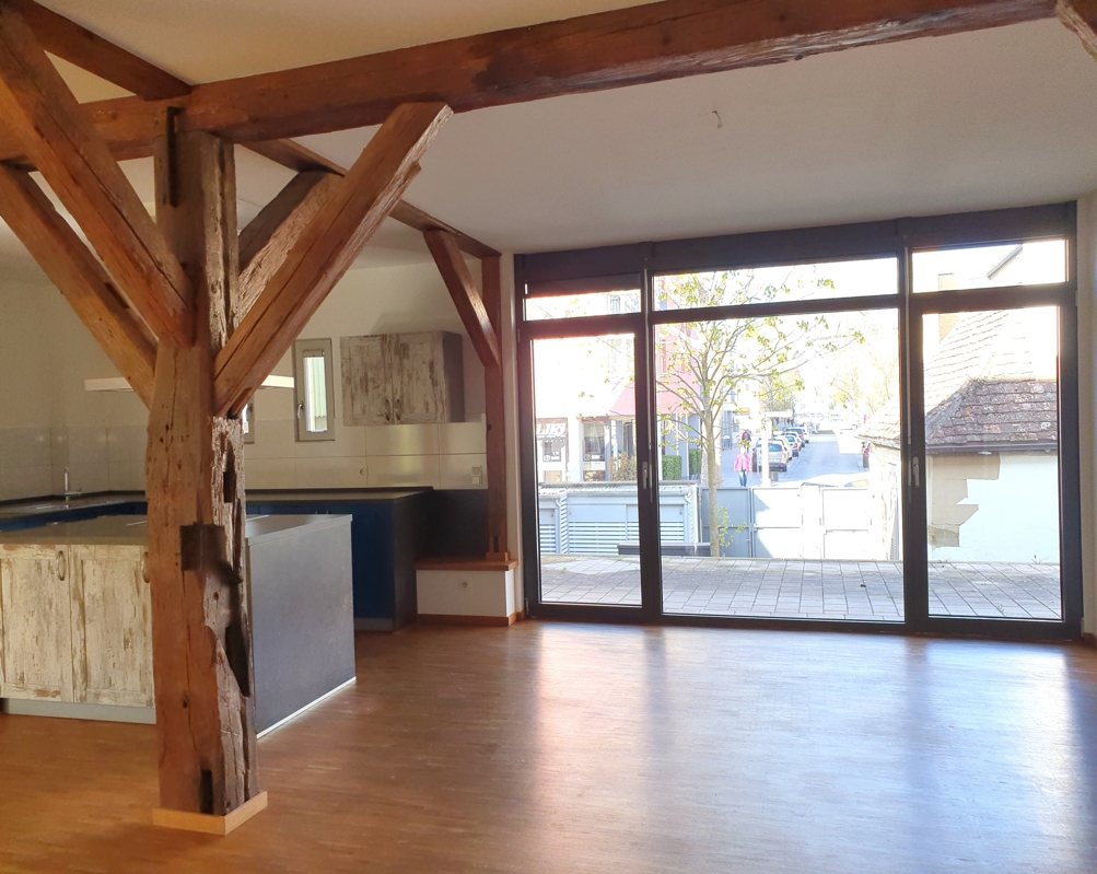 Für das Paar - LOFTartig Wohnen mit sonniger Terrasse mitten in FellbachDie großzügige 2,5-Zimmer-Wohnung mit großer sonnigen Terrasse befindet sich in einem in 2012 kernsanierten, denkmalgeschütztem Gebäudeensemble.