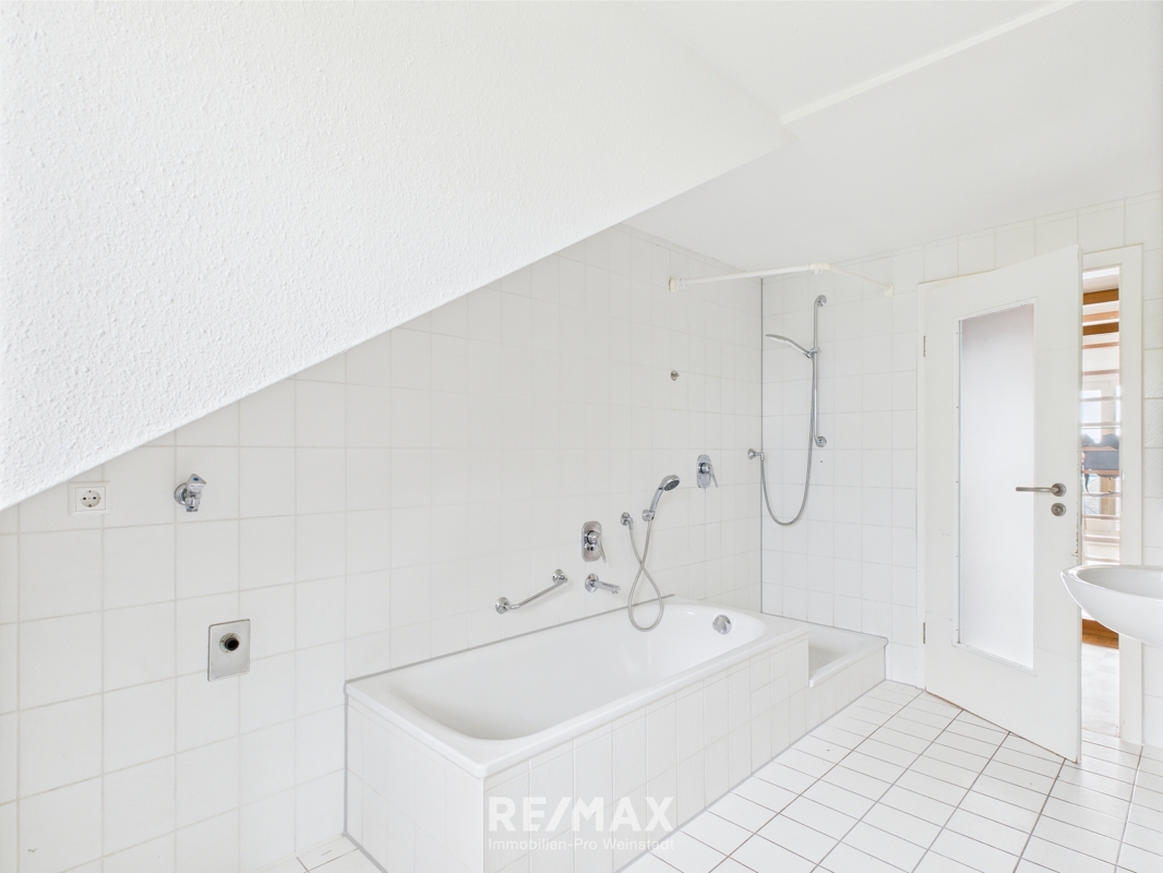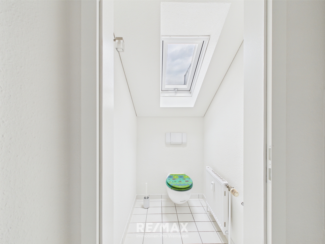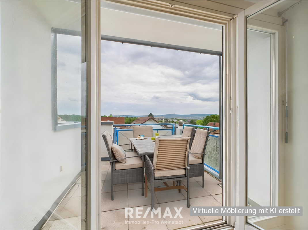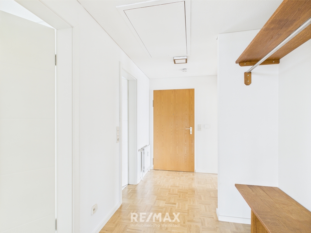 Geräumige 4-Zimmer Wohnung im 4.OG (ohne Aufzug) eines 11-Familienhauses in Waiblingen-Neustadt.Die Böden der Wohnung sind mit Parkett ausgestattet. Das geräumige Esszimmer hat eine Einbauküche (offen gestaltet) und ist der Mittelpunkt der Wohnung mit anschließendem kleinen Balkon. Vom Wohnzimmer gelangt man auf die kleine Galerie unter dem Dach und auf den Balkon mit toller Aussicht. Das Tageslichtbad verfügt über eine Wanne, eine Dusche ein WC und Platz für die Waschmaschine und den Trockner. Zusätzlich gibt es noch ein Gäste-WC. Im Haus ist Kabelanschluß.