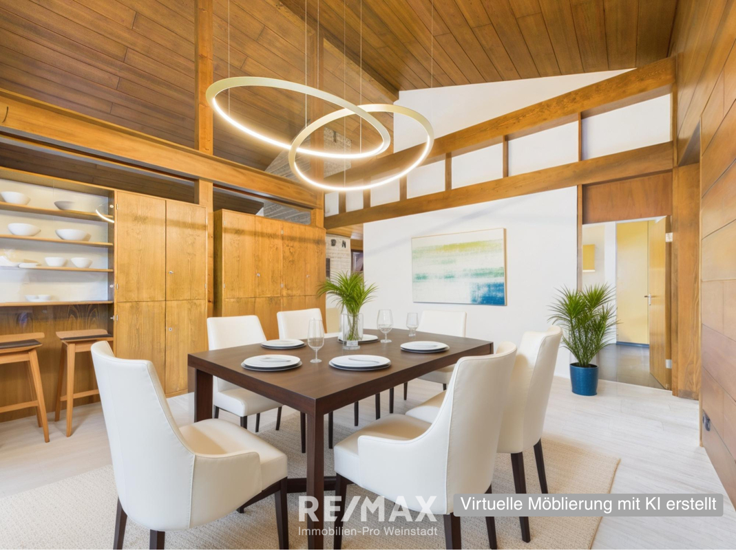 Bereits beim Betreten des großzügigen Wohn- und Essbereichs entfaltet sich ein echtes Wow-Erlebnis: rund 6 Meter hohe Decken schaffen hier ein außergewöhnliches Raumgefühl, das Licht, Weite und stilvollen Wohnkomfort auf spektakuläre Weise vereint – ein Highlight für alle, die Großzügigkeit und architektonische Besonderheit lieben.