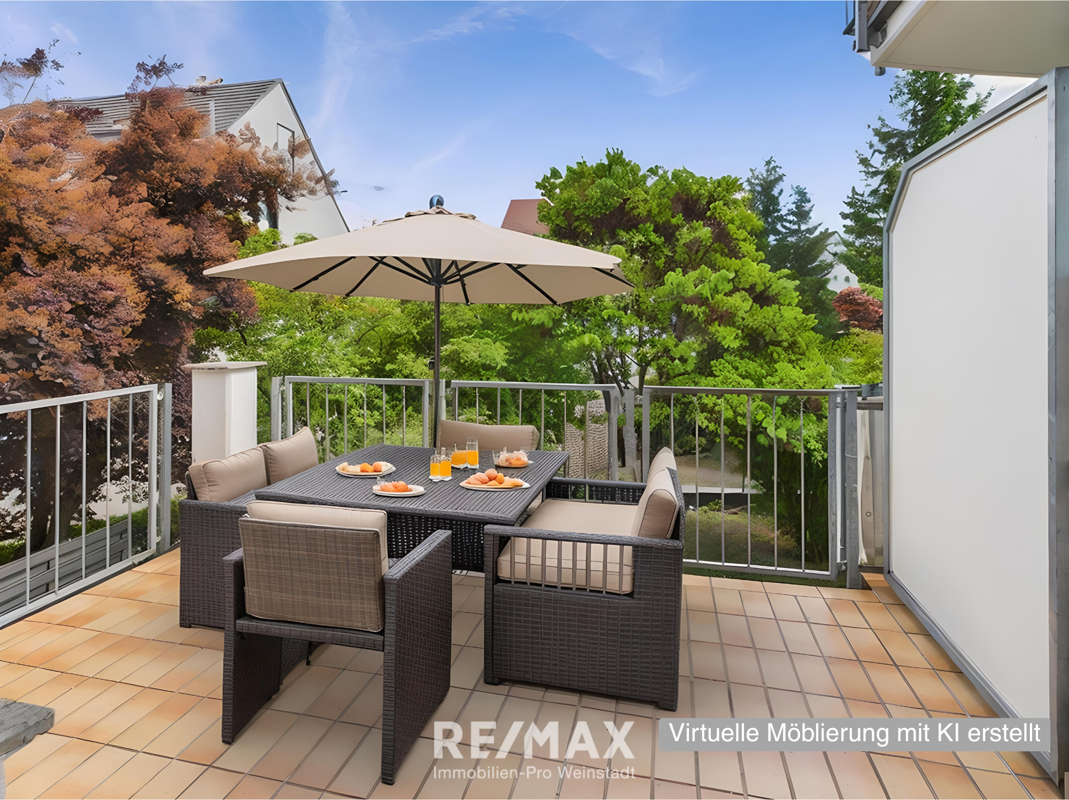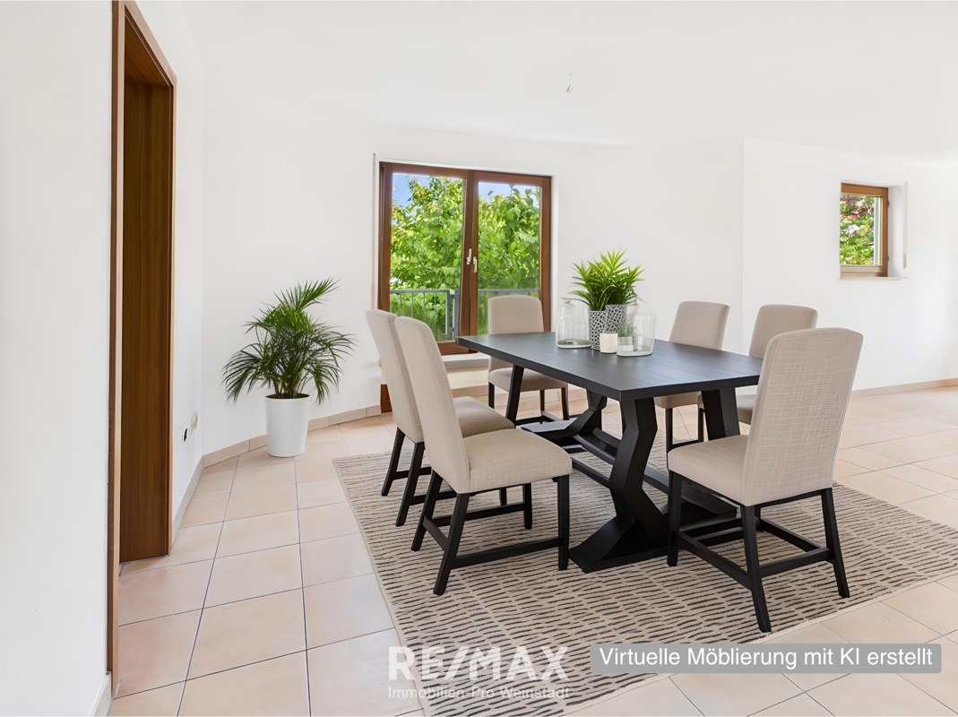 Vom Wohn-Essbereich gelangt man auf den Balkon.