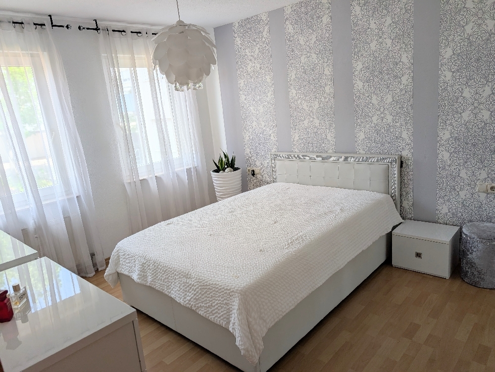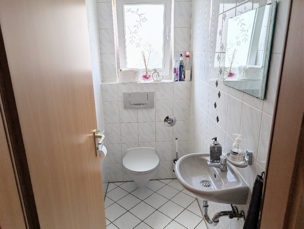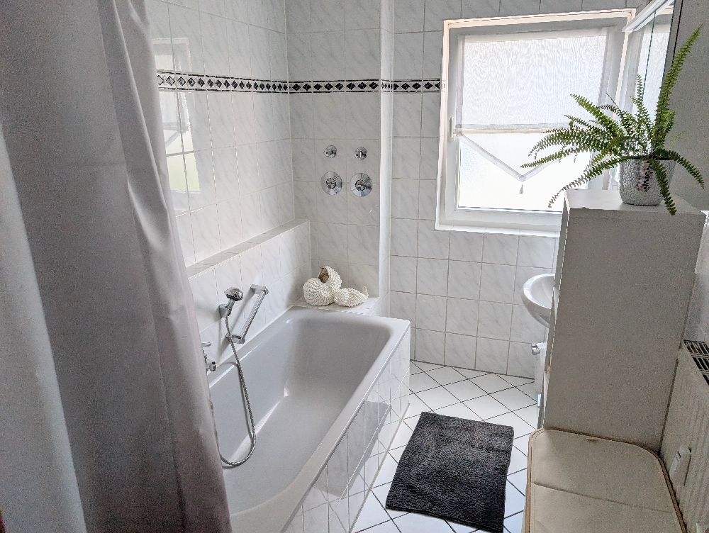 Gepflegte 3,5-Zimmer Wohnung im 1.Obergeschoss eines 6-Familienhauses in Remshalden-Geradstetten.Die Böden der Wohnung sind mit Laminat ausgestattet. Das Tageslichtbad mit Dusche und Wanne, das separate WC und die Küche mit Einbauküche, ohne Kühlschrank (kostenlose Übergabe bei Bedarf) sind gefliest.