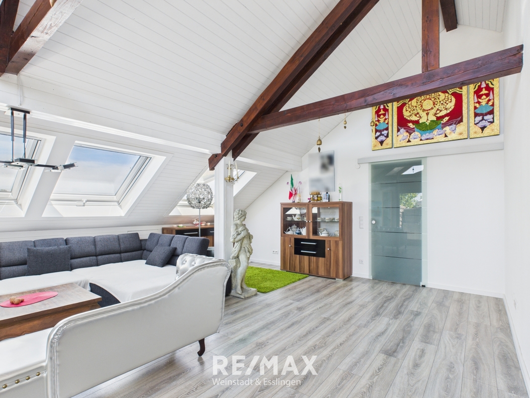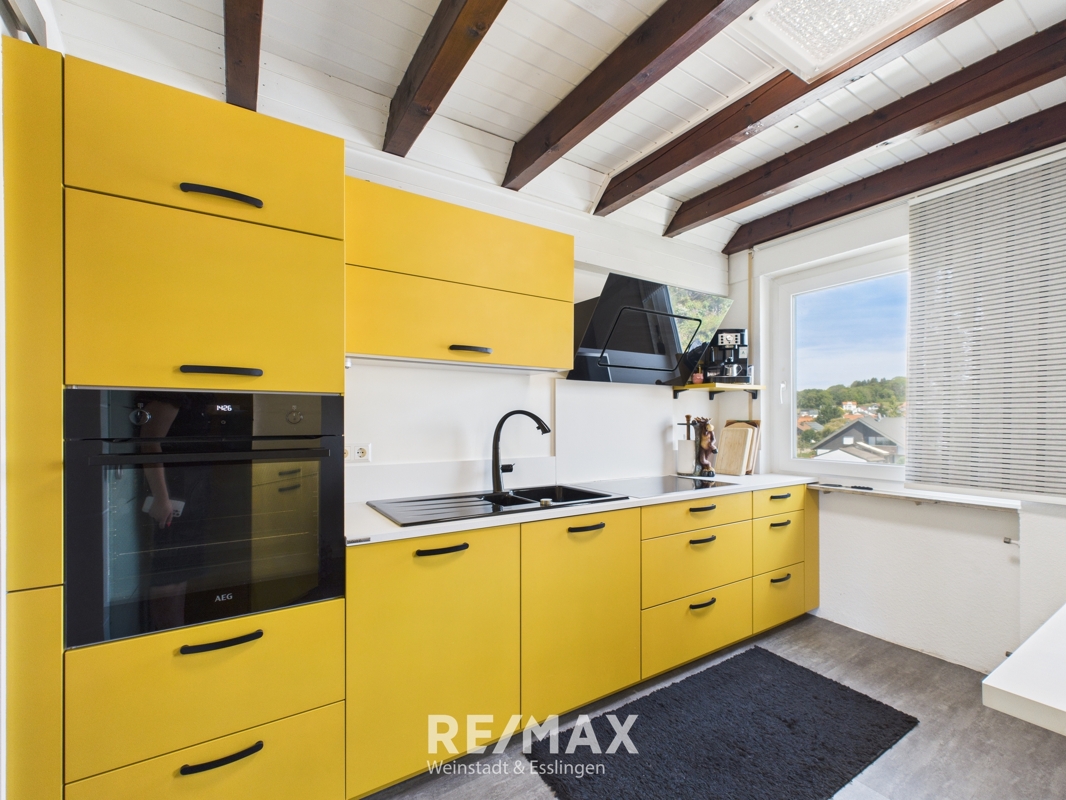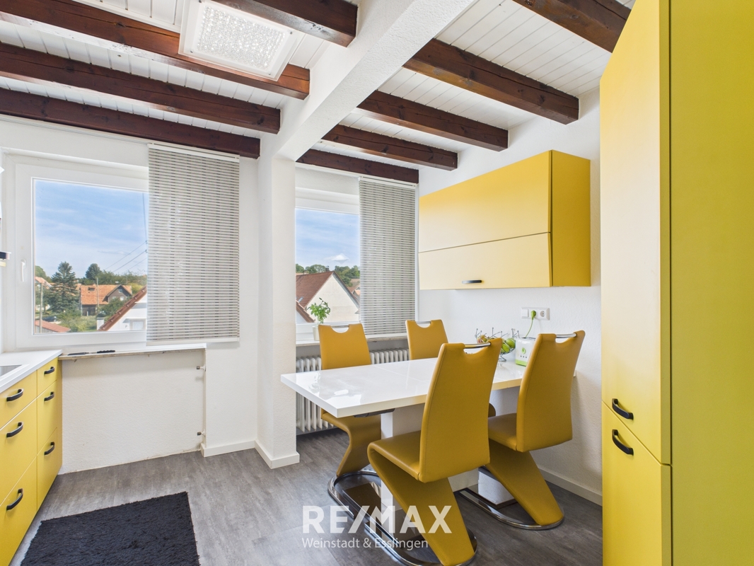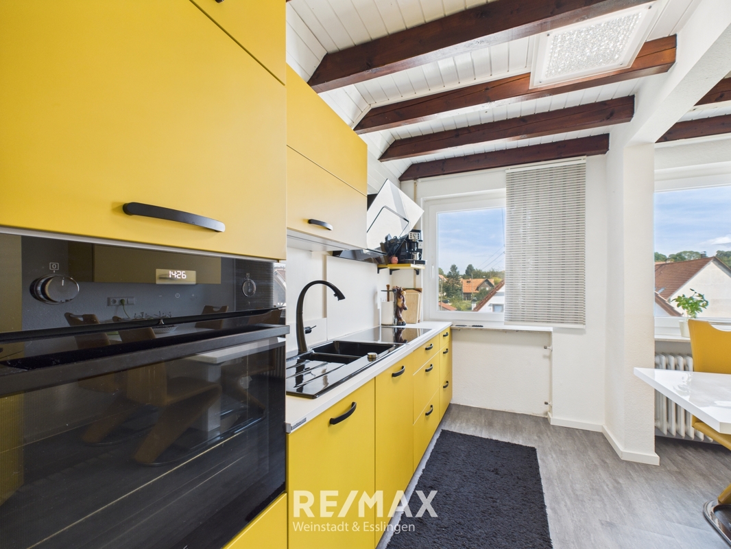 Willkommen in Ihrem neuen Zuhause! Diese im Jahr 2021 vollständig renovierte Dachgeschosswohnung aus dem Jahr 1972 vereint stilvolles Wohnen mit gemütlichem Charme. Auf rund 90 m² Wohnfläche überzeugt sie mit einer gelungenen Raumaufteilung und lichtdurchfluteten Räumen.Das großzügige Wohnzimmer mit Zugang zum sonnigen Balkon, von dem aus man jeden Abend einen wunderschönen Ausblick auf den Sonnenuntergang hat, bildet das Herzstück der Wohnung. Ein helles Schlafzimmer und ein freundliches Kinderzimmer bieten genügend Platz für die Familie oder individuelle Gestaltungsmöglichkeiten. Die moderne Einbauküche mit hochwertigen AEG-Geräten, Induktionskochfeld und Designer-Wasserhahn ist ein echtes Highlight und lässt sich durch eine elegante Schiebeglastür vom Wohnbereich abtrennen.