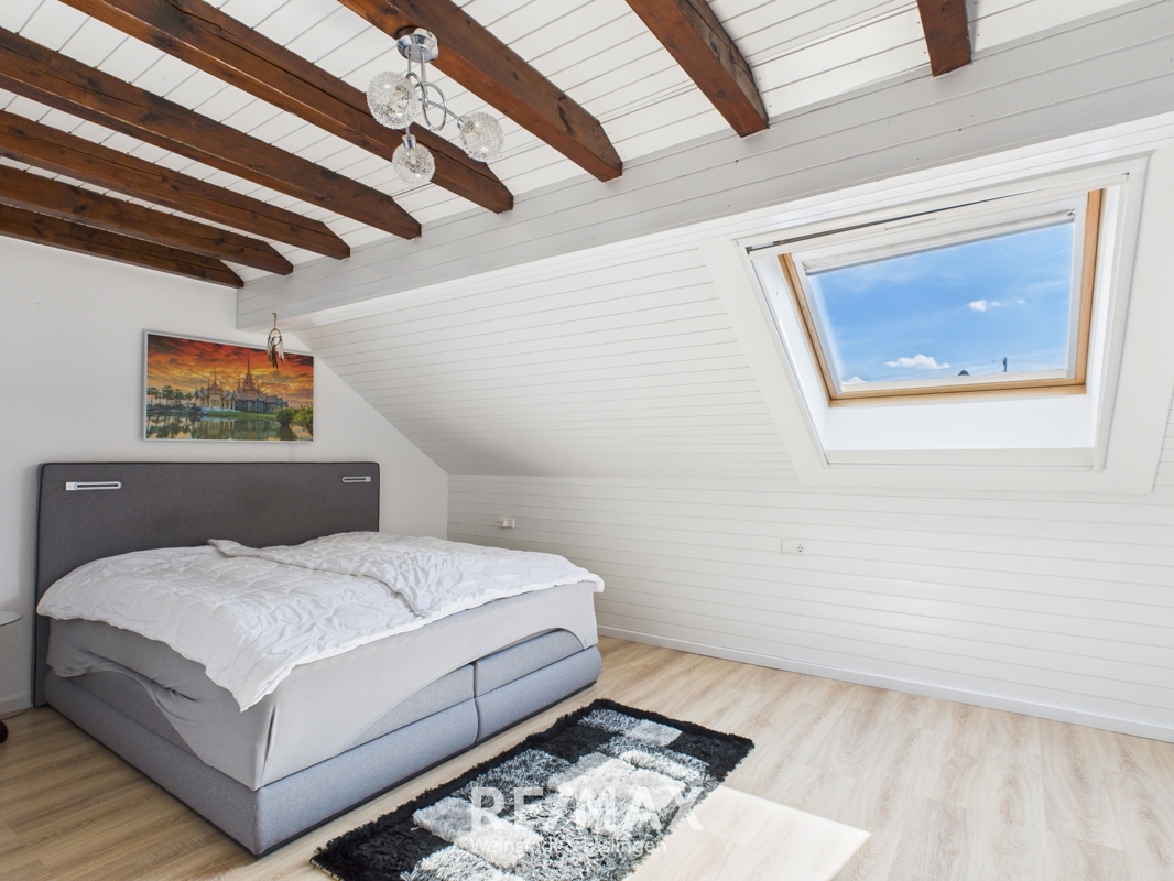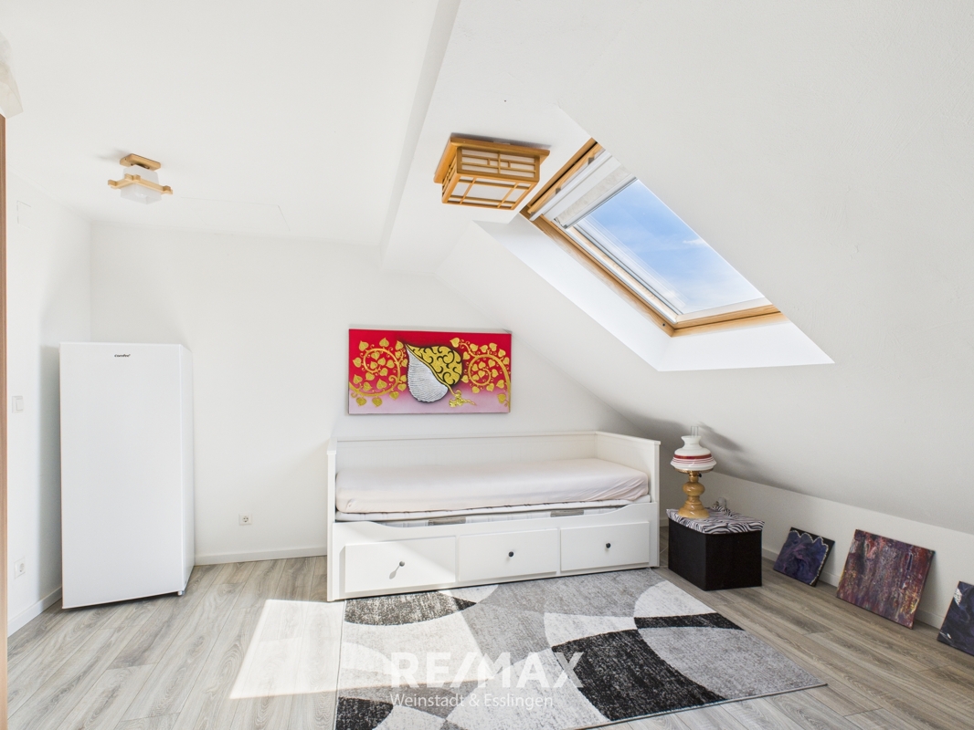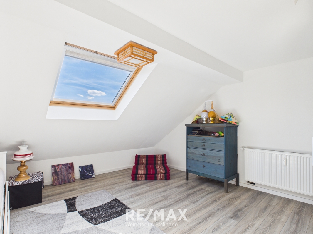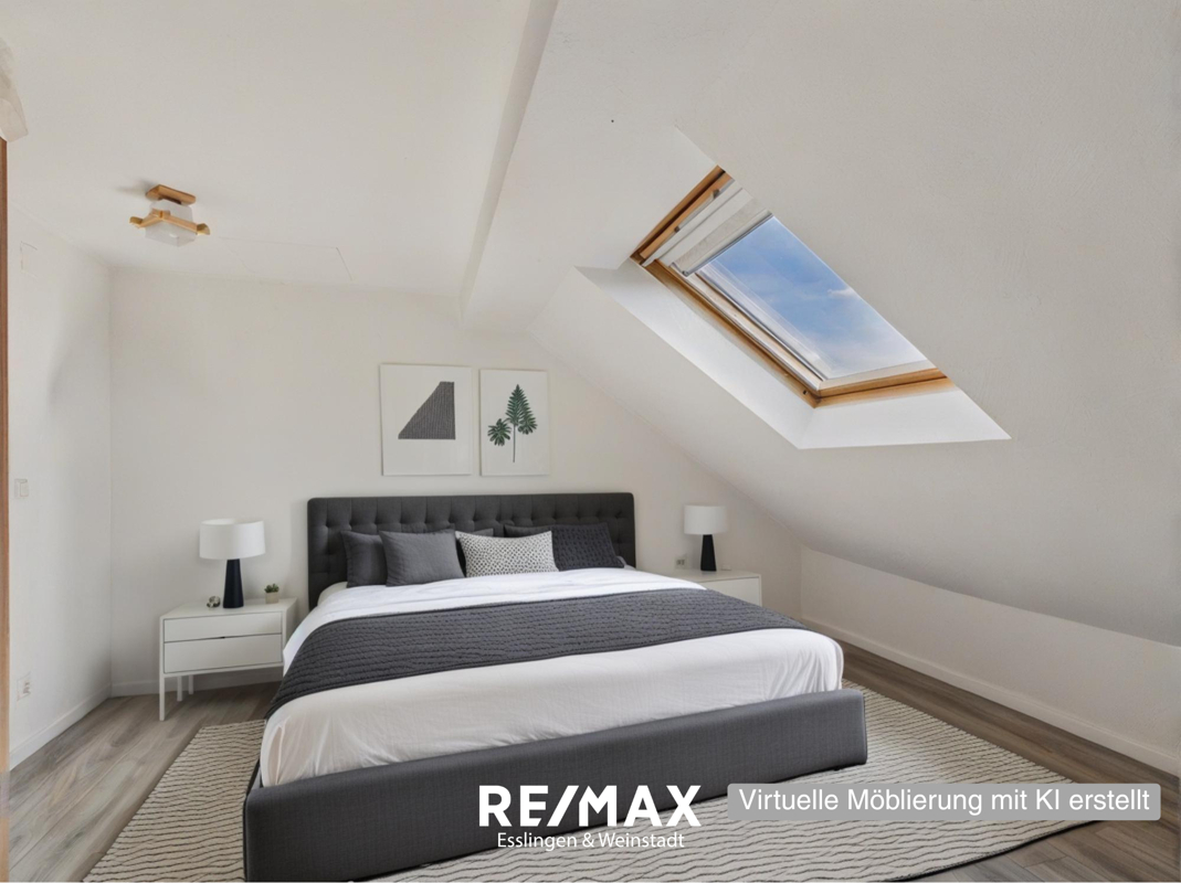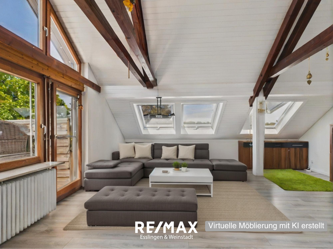 Willkommen in Ihrem neuen Zuhause! Diese im Jahr 2021 vollständig renovierte Dachgeschosswohnung aus dem Jahr 1972 vereint stilvolles Wohnen mit gemütlichem Charme. Auf rund 90 m² Wohnfläche überzeugt sie mit einer gelungenen Raumaufteilung und lichtdurchfluteten Räumen.Das großzügige Wohnzimmer mit Zugang zum sonnigen Balkon, von dem aus man jeden Abend einen wunderschönen Ausblick auf den Sonnenuntergang hat, bildet das Herzstück der Wohnung. Ein helles Schlafzimmer und ein freundliches Kinderzimmer bieten genügend Platz für die Familie oder individuelle Gestaltungsmöglichkeiten. Die moderne Einbauküche mit hochwertigen AEG-Geräten, Induktionskochfeld und Designer-Wasserhahn ist ein echtes Highlight und lässt sich durch eine elegante Schiebeglastür vom Wohnbereich abtrennen.